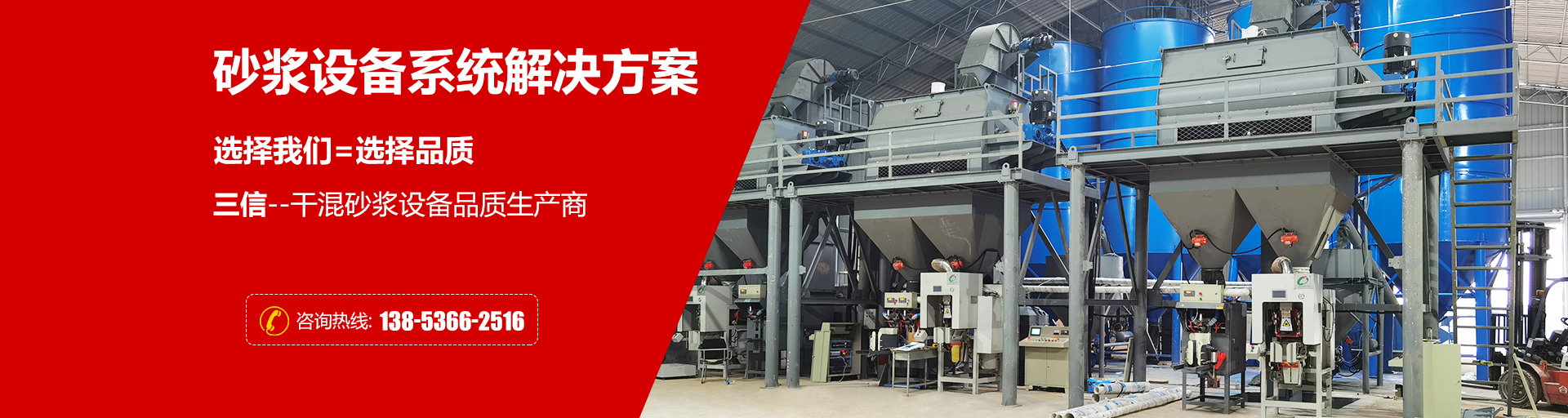 三信機械專注于干粉砂漿生產(chǎn)線、膩子粉生產(chǎn)線、特種砂漿設(shè)備以及砂漿施工設(shè)備的設(shè)計開發(fā)、加工制造